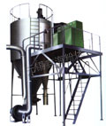 概述: 噴霧干燥是液體工藝成形和干燥工業(yè)中廣泛應(yīng)用的工藝。適用于從溶液、乳液、懸浮液和可塑性糊狀液體原料中生成粉狀、顆粒狀或塊狀固體產(chǎn)品。因此,當(dāng)成品的顆粒大小分布、殘留水份含量、堆積密度和顆粒形狀必須符合精確的標(biāo)準(zhǔn)時(shí)。噴霧干燥是一道合適的工藝。 工作原理: 空氣經(jīng)過濾和加熱,進(jìn)入干燥器頂部空氣分配器,熱空氣呈螺旋狀均勻地進(jìn)入干燥室。料液經(jīng)塔體頂部的高速離心霧化器,(旋轉(zhuǎn))噴霧成細(xì)微的霧狀液珠,與熱空氣并流接觸在短的時(shí)間內(nèi)可干燥為成品。成品連續(xù)地由干燥塔底部和旋風(fēng)分離器中輸出,廢氣由風(fēng)機(jī)排空。 特點(diǎn): ★ 干燥速度快,料液經(jīng)霧化后表面積大大增加,在熱風(fēng)氣流中,瞬間就可蒸發(fā)95%-98%的水份,完成干燥時(shí)間僅需數(shù)秒,特別適用于熱敏性物料的干燥?! ?br /> ★ 產(chǎn)品具有良好的均勻度、流動(dòng)性和溶解性,產(chǎn)品純度高,質(zhì)量好?! ?br /> ★ 生產(chǎn)過程簡(jiǎn)化,操作控制方便。對(duì)于含濕量40—60%(特殊物料可達(dá)90%)的液體能一次干燥成粉粒產(chǎn)品,干燥后不需粉碎和篩選,減少生產(chǎn)工序,提高產(chǎn)品純度。對(duì)產(chǎn)品粒徑,松密度,水份,在一定范圍內(nèi)可通過改變操作條件進(jìn)行調(diào)整,控制和管理都方便。
